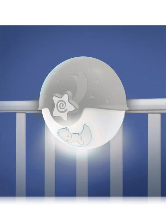 Let your baby sleep peacefully with the Infantigo soothing light and projector. It comes with 3 modes: night light, projector and bedside lamp. You can choose from the two sound levels. The projector will start again if necessary by pressing the star in the center of the lamp. Simply remove the fasteners and keep it in the piece of furniture to work as bedside lamp. ,
